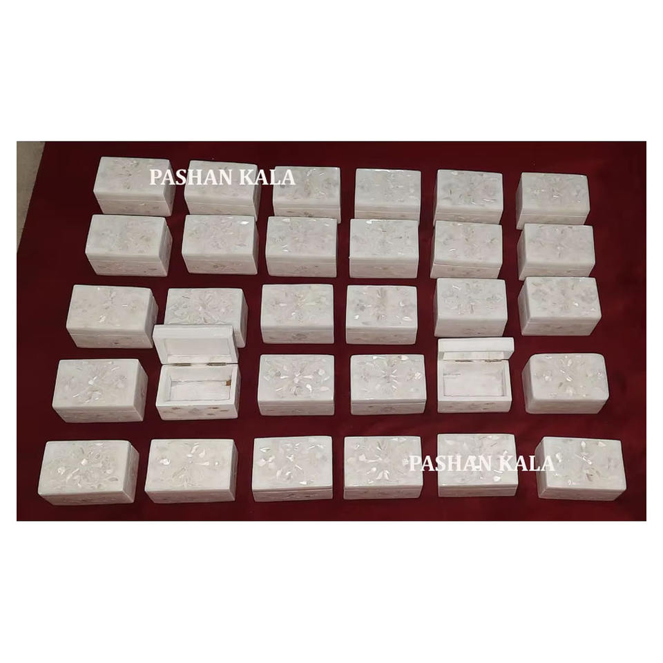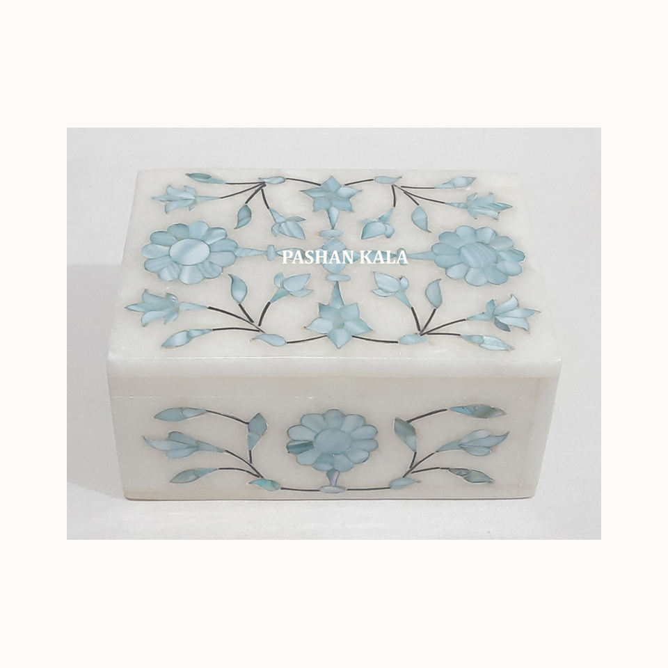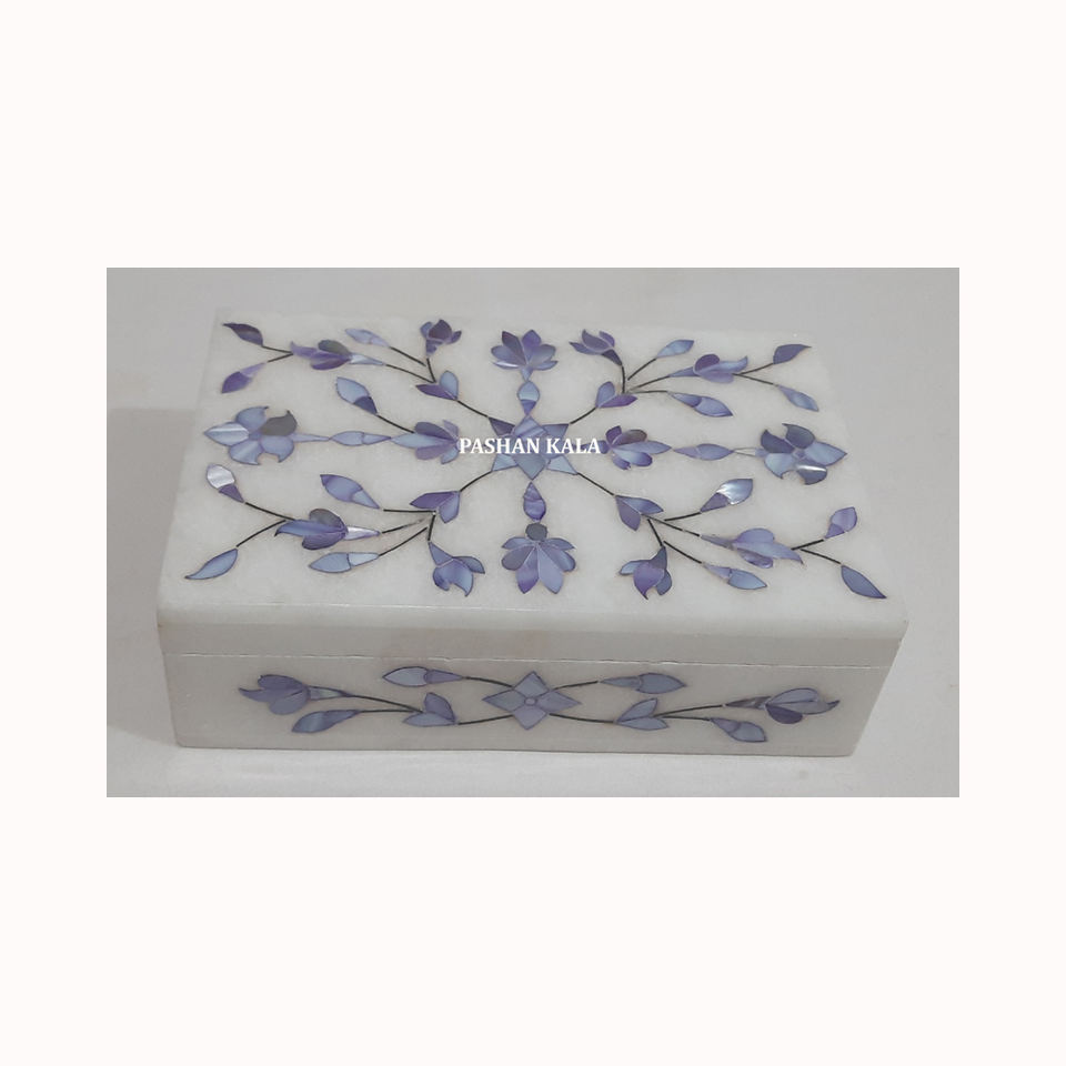 Beautiful Handmade Natural White Marble Mother Of Pearl Inlay Jewellery Box Flower Design Rectangle Shape Used For Watch Packing