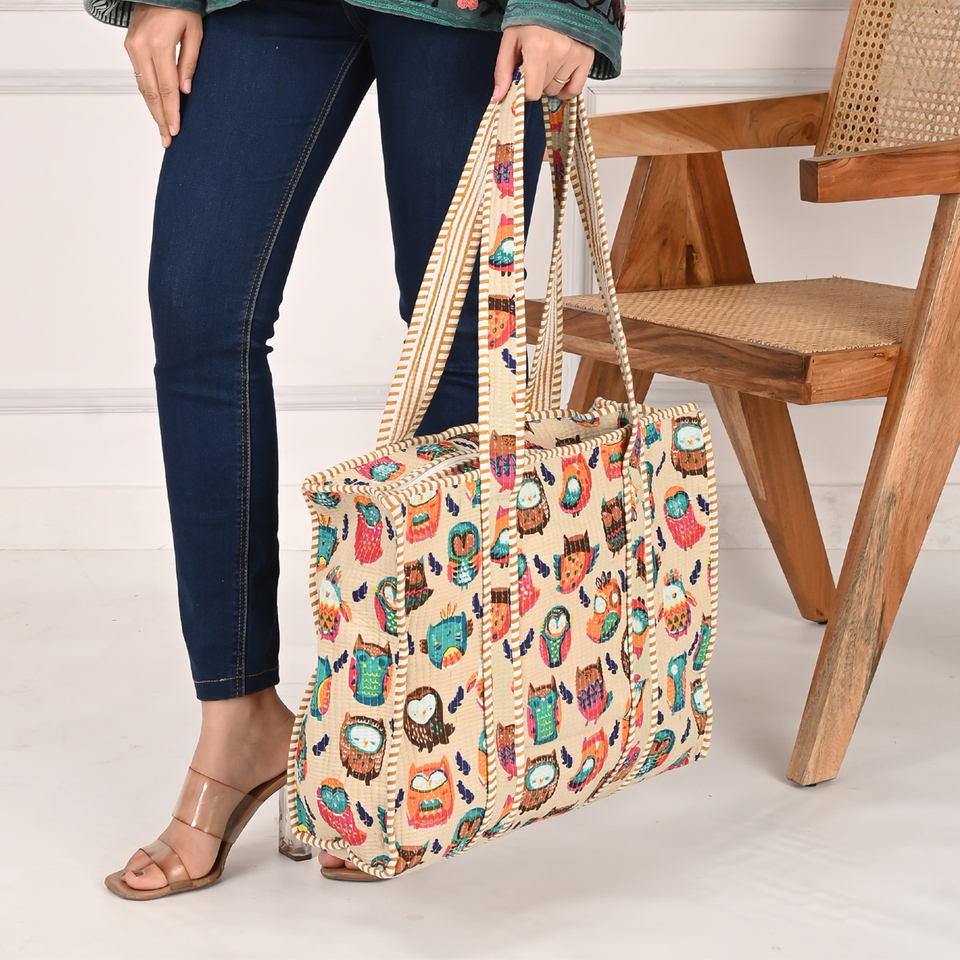 Beautiful Handmade Printed Cotton Quilted Tote Bag Lightweight Eco Friendly Shoulder Bag for Travel and Shopping