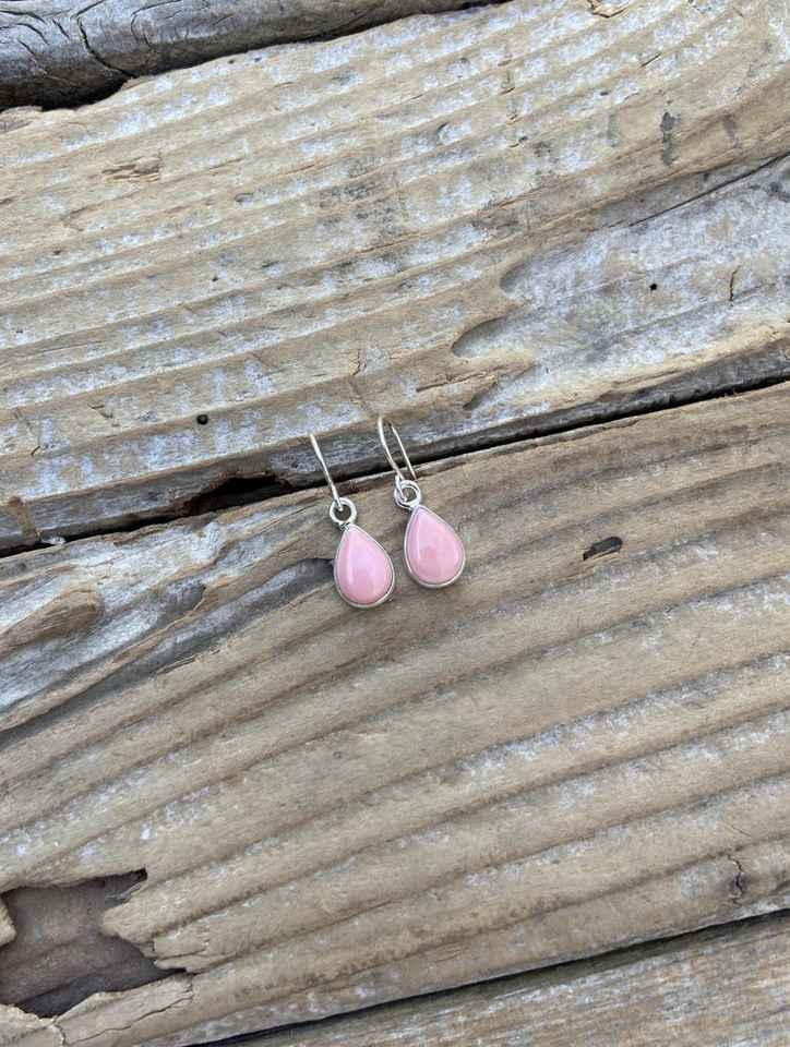 Beautiful Handmade Sterling Silver Drop Earrings with Pink Conch Shell Cabochons Gold Plated Trendy Wedding & Party Jewelry
