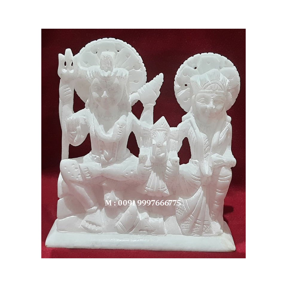 Beautiful Handmade White Marble with Fine Polished And Sitting Position Shiv Parivar Sculpture For Home And Temple Worship