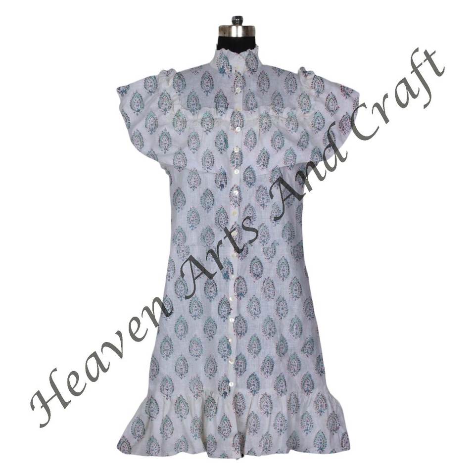 Beautiful Handmade Women's Cotton Dress Lightweight Block Print Indian Tunics Stylish Loose Silhouette Casual For Summer Natural
