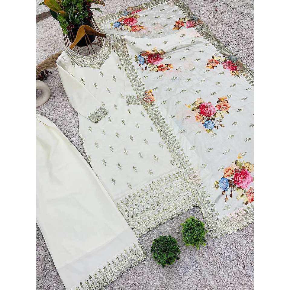 Beautiful Heavy Embroidery Sequence Worktop-Bottom and Dupatta Indian & Pakistani Clothing