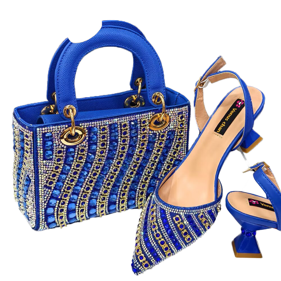 Beautiful High Heel Women Shoes Bag Set with Stones Anti-Slippery Winter/Summer Ready High Quality Bridal Party Shoes Match Bag