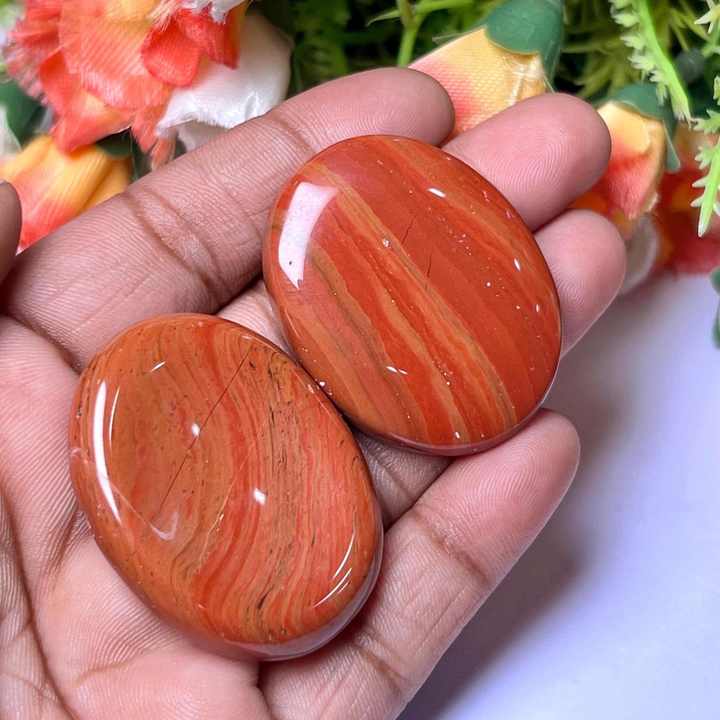 Beautiful Hot Selling Oval Shaped Engraved Red Jasper Worry Stone Reiki Healing Red Jasper Thumb Stone for Meditation Crystal