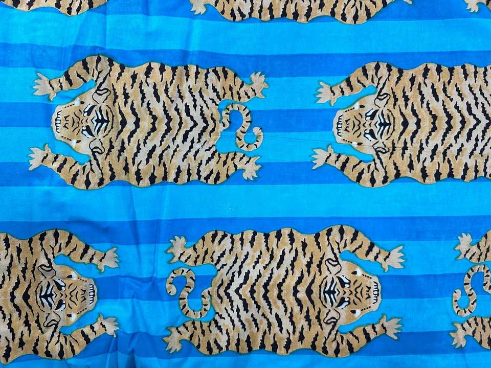 Beautiful Indian Hand Block Printed Organic Cotton Fabric Tiger Print for Curtains Bags Covers & Girls Wear-Wholesale Price