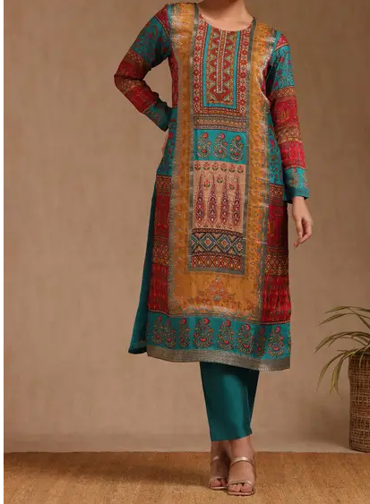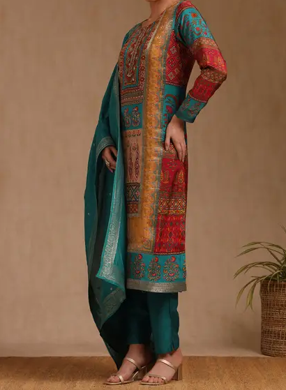 Beautiful Indian & Pakistani Clothing Women viscose silk Women Kurta Dress with Dupatta Multi Colour Regular Fit Outfit