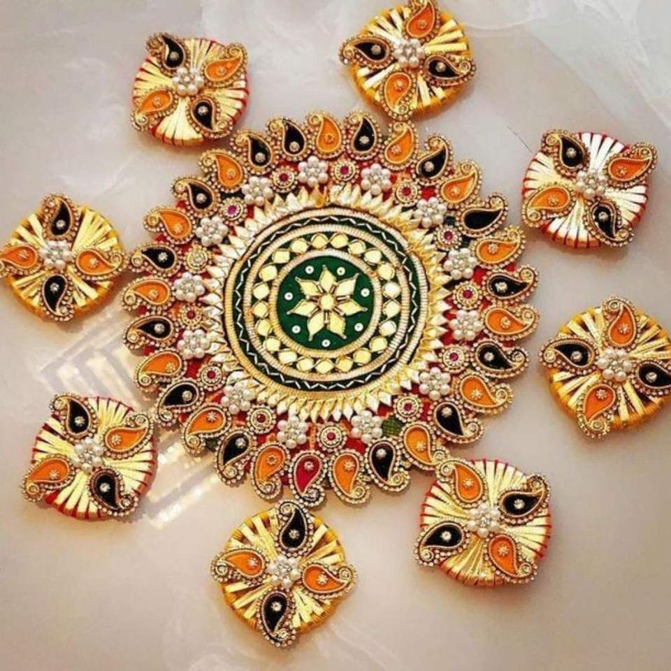 Beautiful Intricate Rangoli Mat Multi-Color Traditional Indian Design for Festive Everyday Candle Wedding Table Decorations