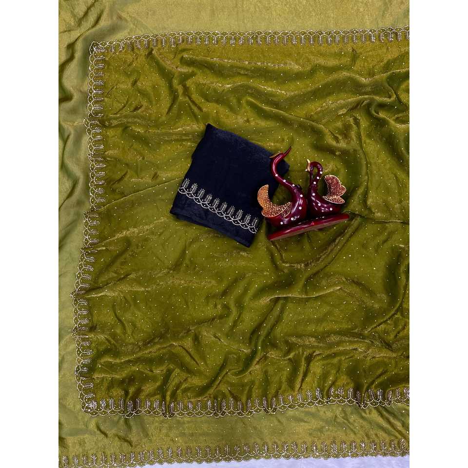Beautiful Jarkhan Diamond Work Party Wear Saree Elegant Evening Dresses