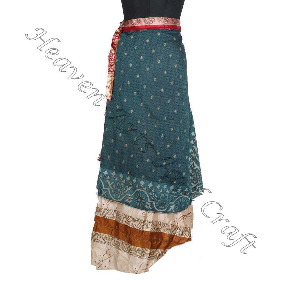 Beautiful Ladies Fashion Beach Wrap Skirt 2 Layer Reversible Magic Silk Saris Wrap Long Skirt Silk Sari Long Panel Skirt Fancy