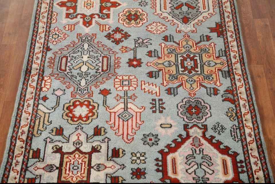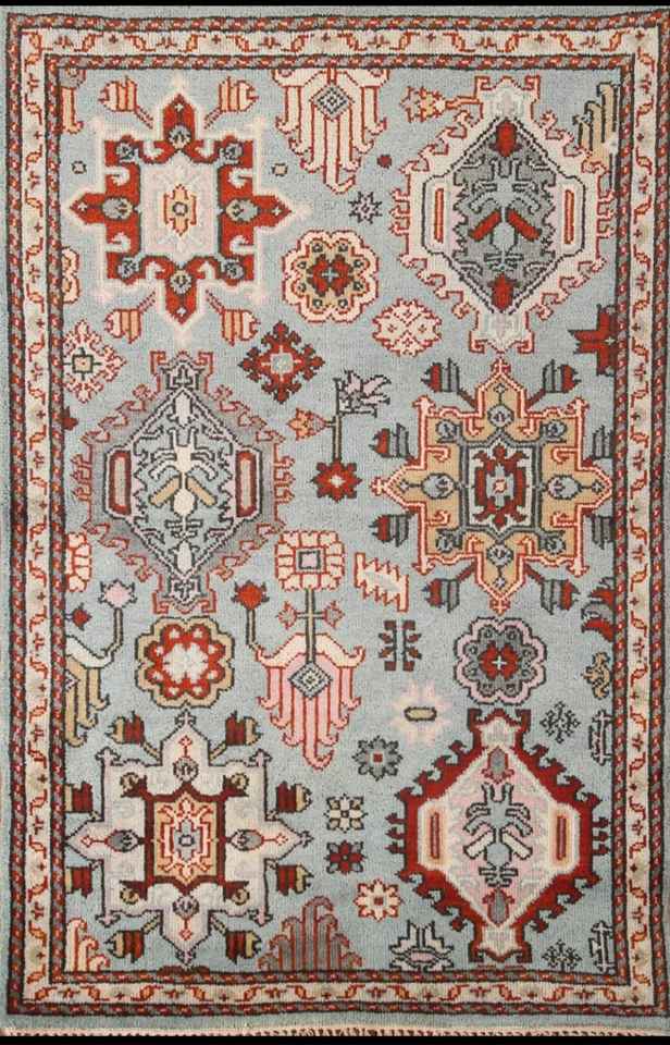 Beautiful Light Blue Oushak Geometric Wool Hand-Knotted 6x9 Feet Area Rug Custom Oriental Carpet Home Camping Woven Made Cotton