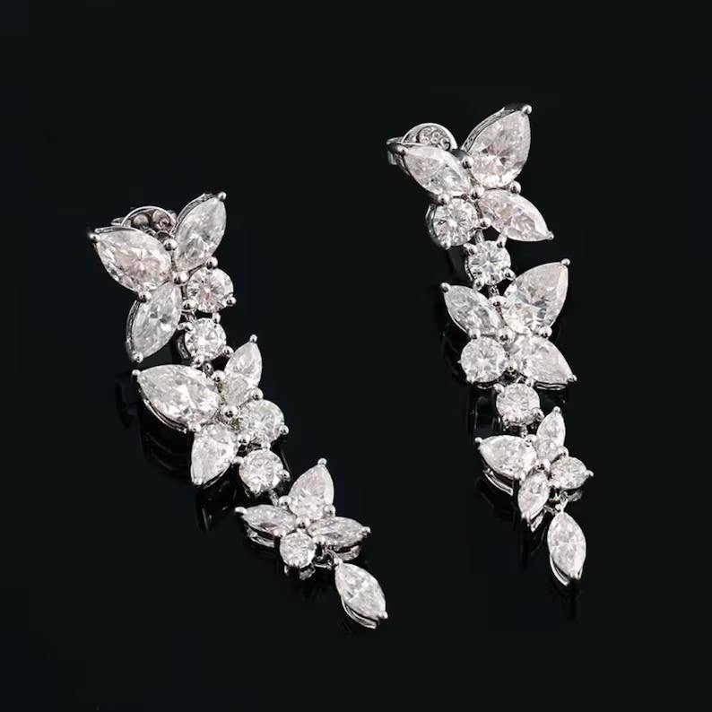 Beautiful Marquise & Pear & Round Cut Butterfly Lab Grown Diamond Earrings Drop Dangle Long Earrings Customized Jewelry