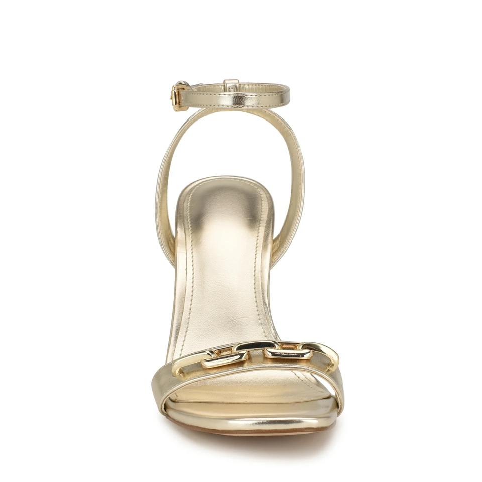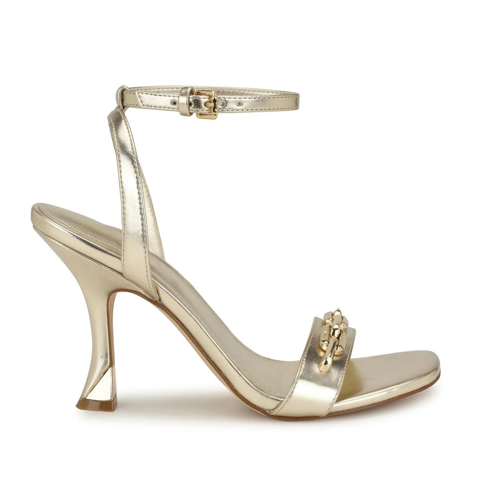 Beautiful Metal Chain Round Toe Stiletto Attractive High Heel Sandal Open Toe Sandals Buckle Ankle Strap Shiny Gold Party Shoes