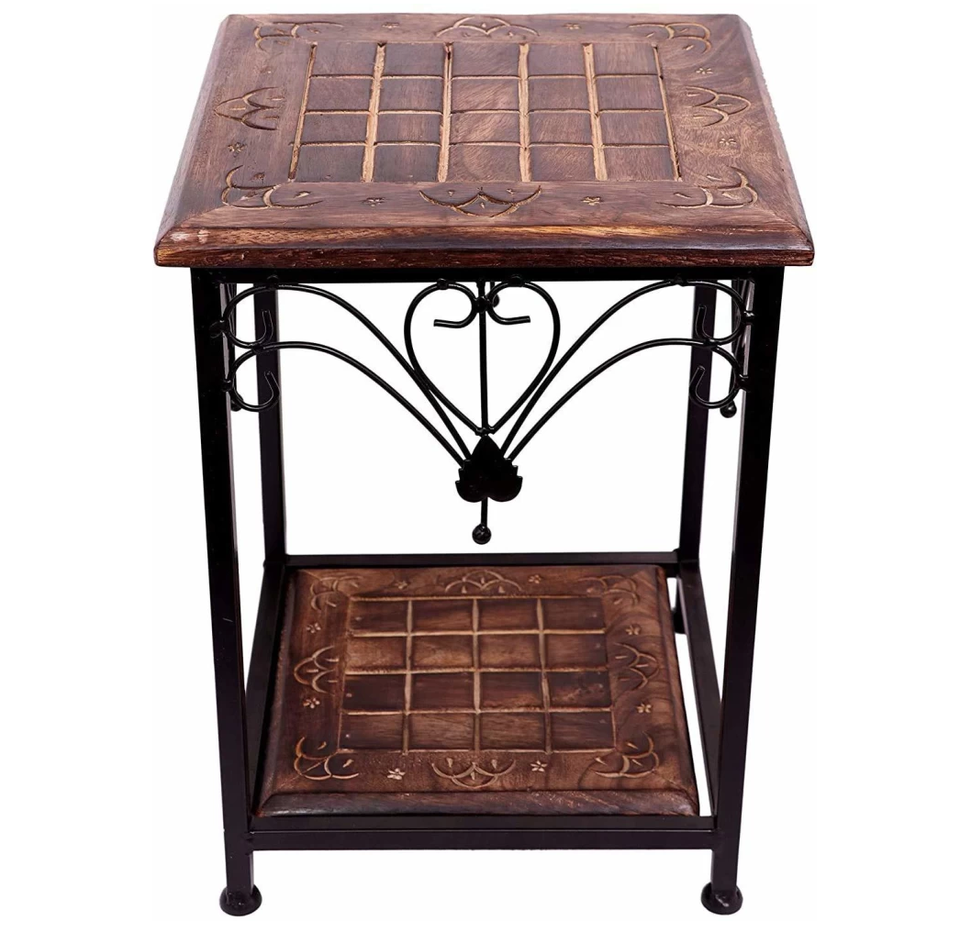 Beautiful Metal T Sitting Stool Wooden Brass Beautiful Carving Design Side Table Living Room Home Decor|Office Decoration