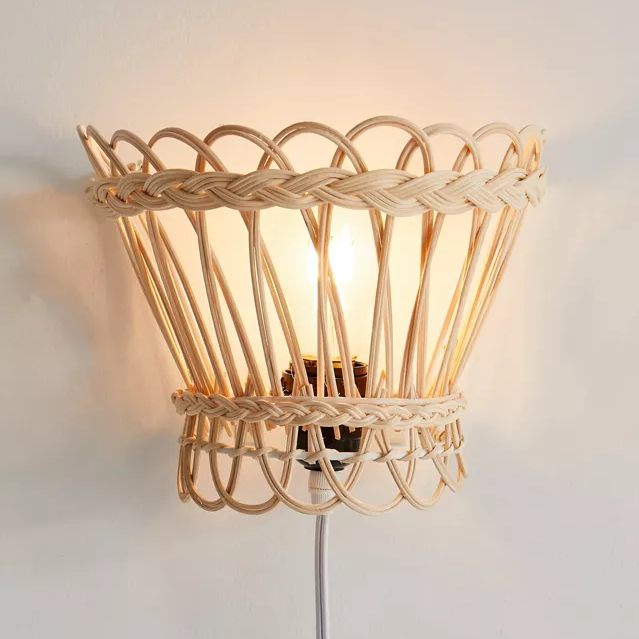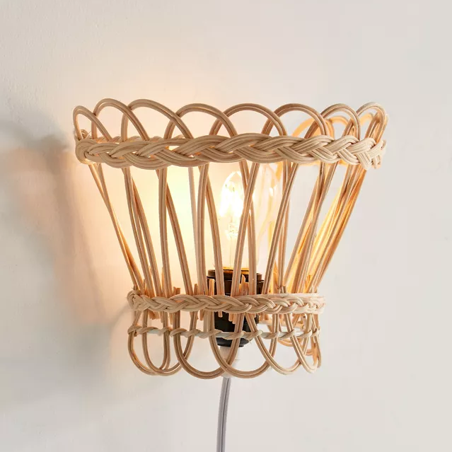 Beautiful Modern Rattan Wall-mounted Sconce Light Indoor Wicker Lamps Willow Wall Lampshade for Bedroom Decor