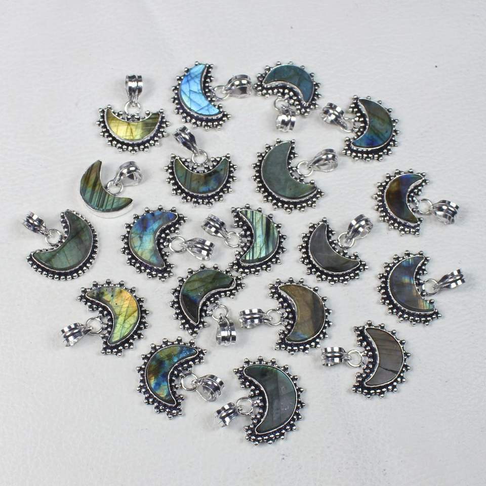 Beautiful Multi Labradorite Moon Gemstone Pendant Designer Moon Shape Collet Pendant Jewelry for Retail