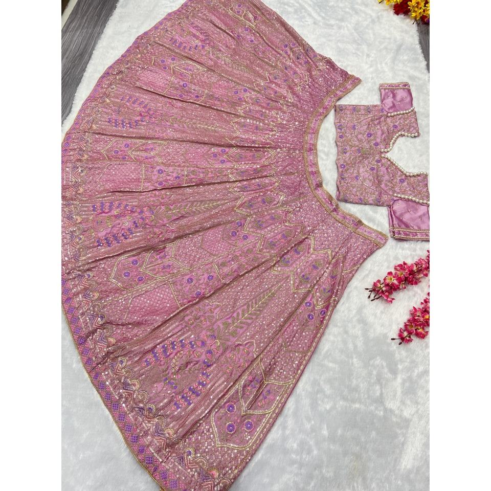 Beautiful Multi-Thread Embroidery Work Party Wear Lehenga Choli Indian & Pakistani Clothing