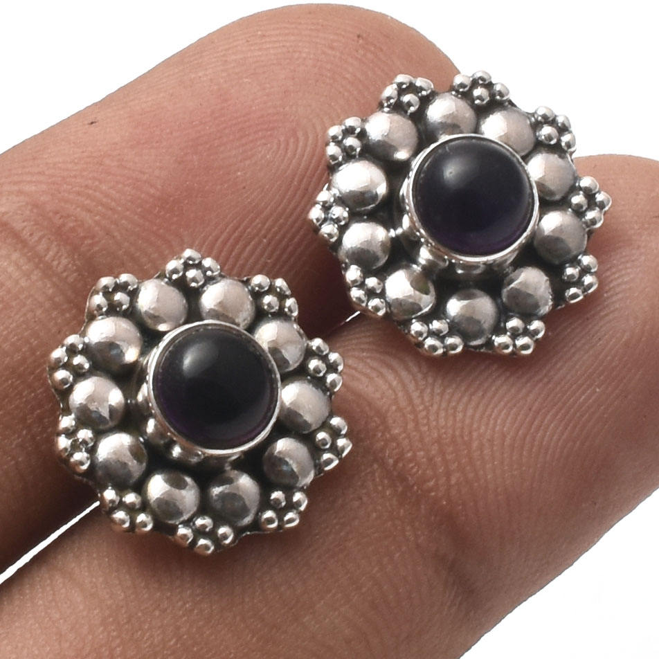 Beautiful Natural Black Onyx Gemstone Stud Earrings, Handmade 925 Sterling Silver Flower Design Earrings For Wholesale Suppliers