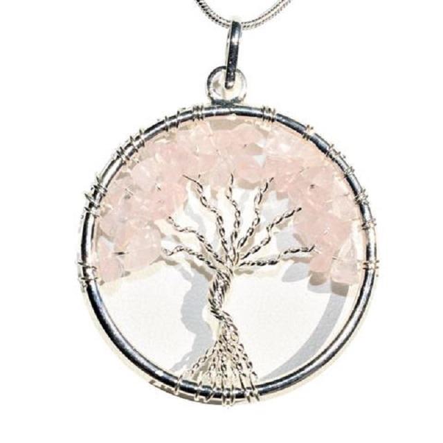 Beautiful Natural Healing Crystals Rose Quartz Tree Of Life Pendants Wholesale Gemstone Pendants For Jewellery ;Wholesaler