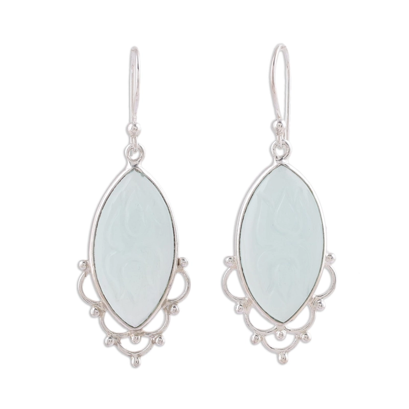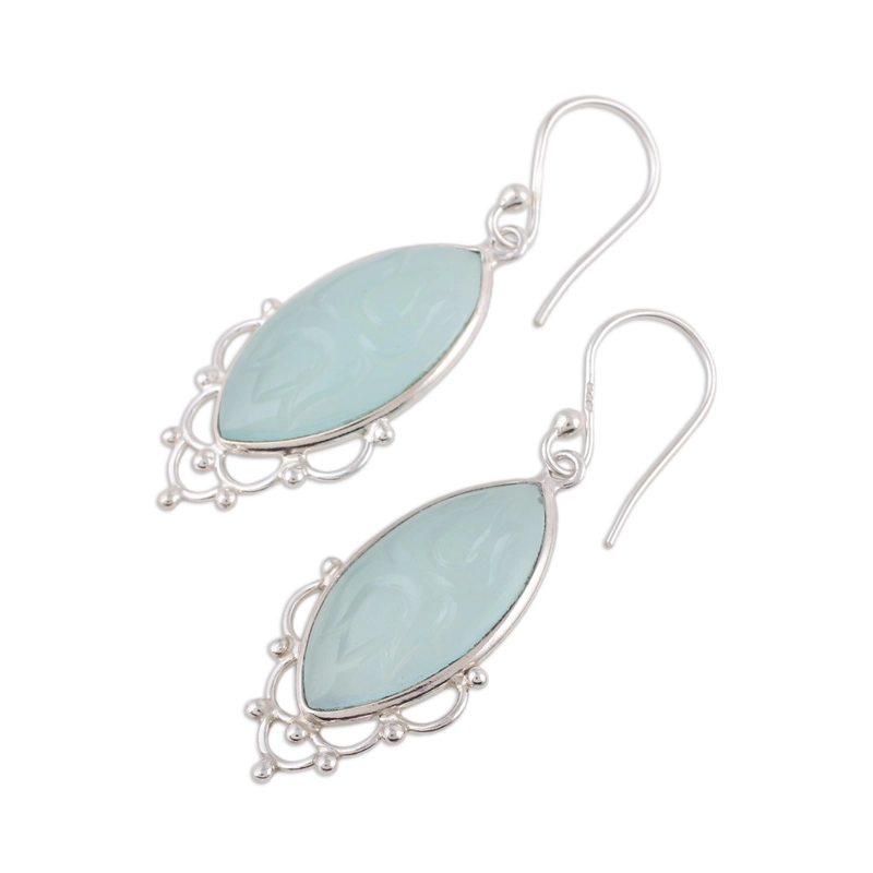 Beautiful Natural Stone Blue Chalcedony Christian Gift Women's Drop Dangle Earrings 925 Sterling Silver Handmade Hook Factory