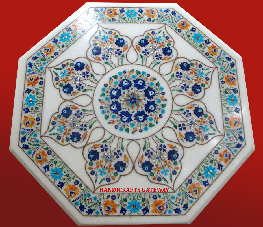 Beautiful Natural White Marble Inlay Work Table Top Dining Table and Coffee Table for Octagonal Shape Mix Color Inlay Marble Top