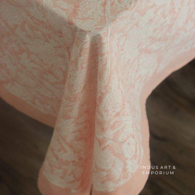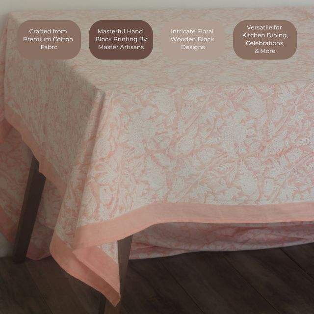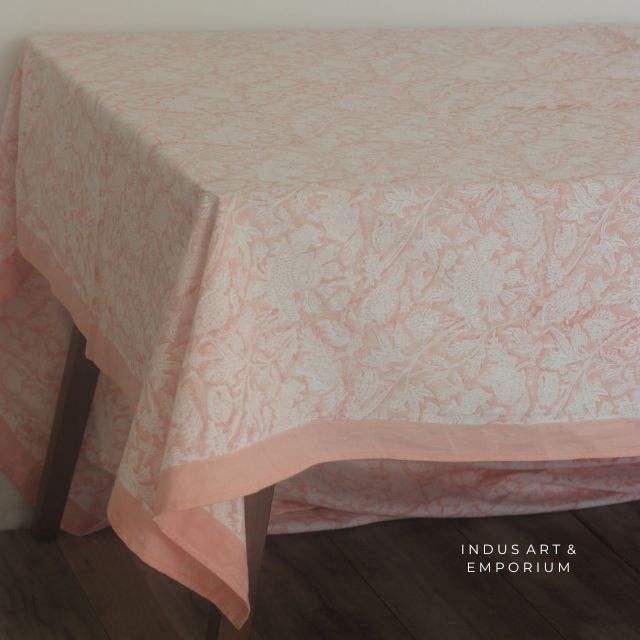 Beautiful Orange Gad Floral Indian Cotton Canvas Hand Block Printed Table Cloth 6 Seater & 8 Seater Durable Table Cover