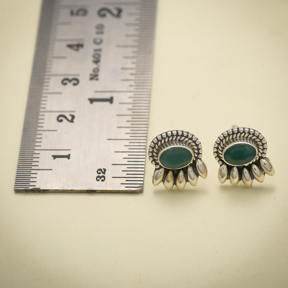 Beautiful Oval Shape Emerald Gemstone 925 Sterling Silver Tiny Handmade Stud Earrings Jewelry Jewellery Manufacturer