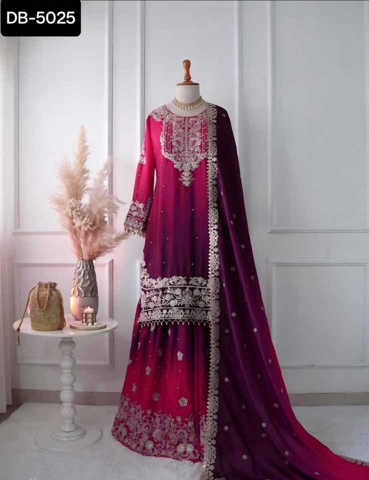 Beautiful Pink Partywear Straight Kurta Sharara and Dupatta Set Partywear Embroidered Pakistani Salwar Kameez for Wedding Wear