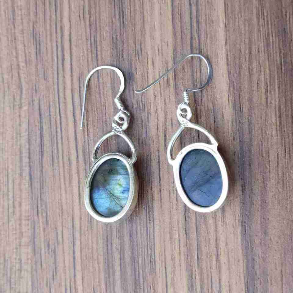 Beautiful Premium Quality Handmade Bohemian Sterling Silver Artisan Earring Blue Flash Labradorite Gemstone for Weddings Parties