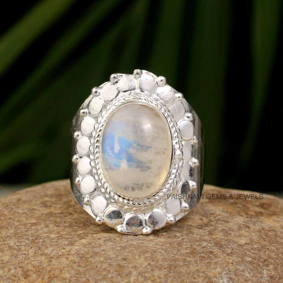Beautiful Rainbow Moonstone Oval 10x14mm Shape 925 Sterling Silver Handmade Bohemian Gemstone Solid Silver Ring