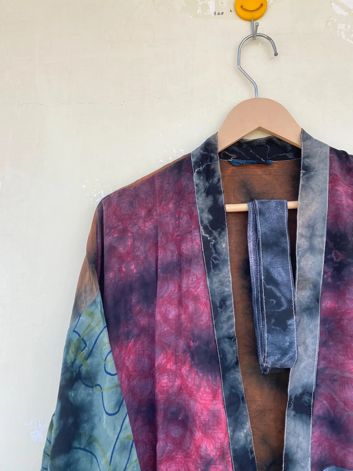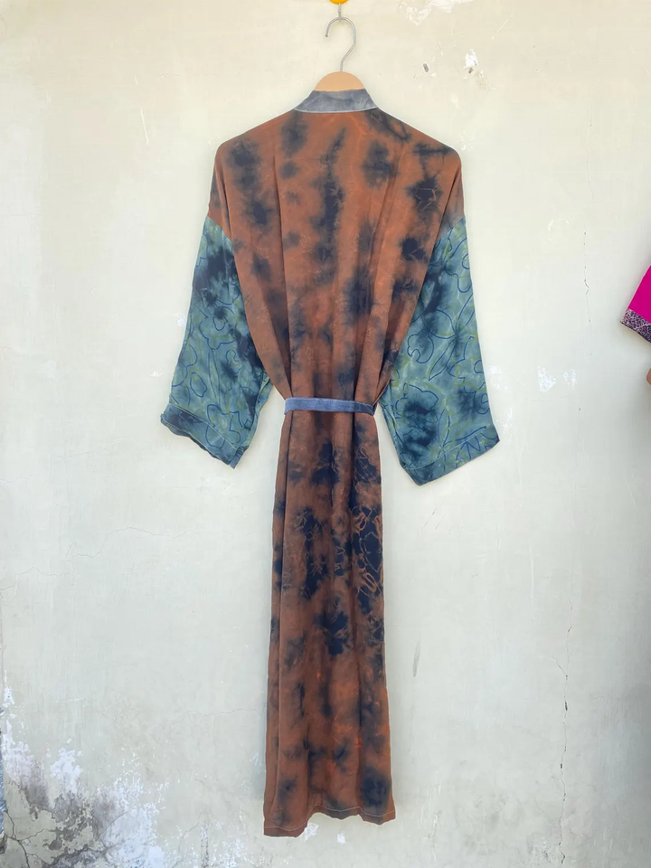 Beautiful Rainbow Tie Dye Silk Kimono Robe Beach Cover up Silk Kimono Summer Wear Long Silk Dress
