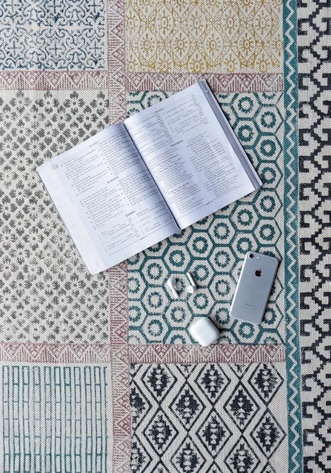 Hand Knotted, Loop Pile, Handmade, Woven, Block Print