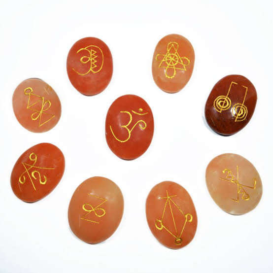 Beautiful Red Carnelian Karuna 9 Stone Oval Reiki Set Wholesale Crystal Supplies Engraved Stones Buy From Amayra Crystal Exports