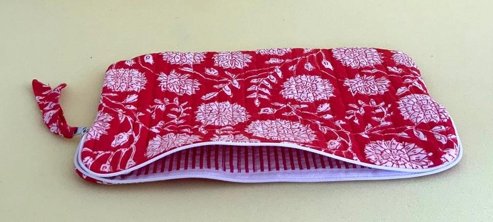 Beautiful Red Floral Block Print Quilted Laptop Protector Sleeve 100% Cotton Tablet Zipper Pouch for Daily Protection