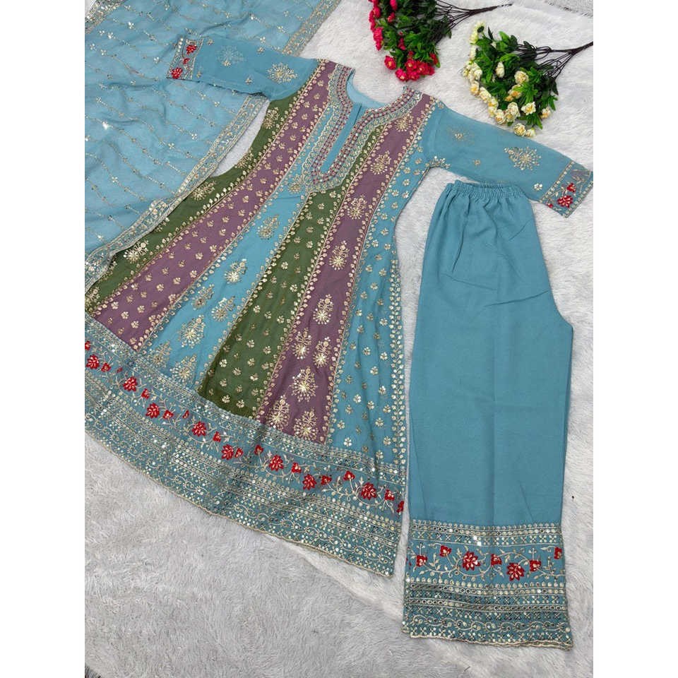 Beautiful ST Traditional Muslim Clothing & Accessories Beige Size 42 Top Bottom Plazzo with Sequence Work