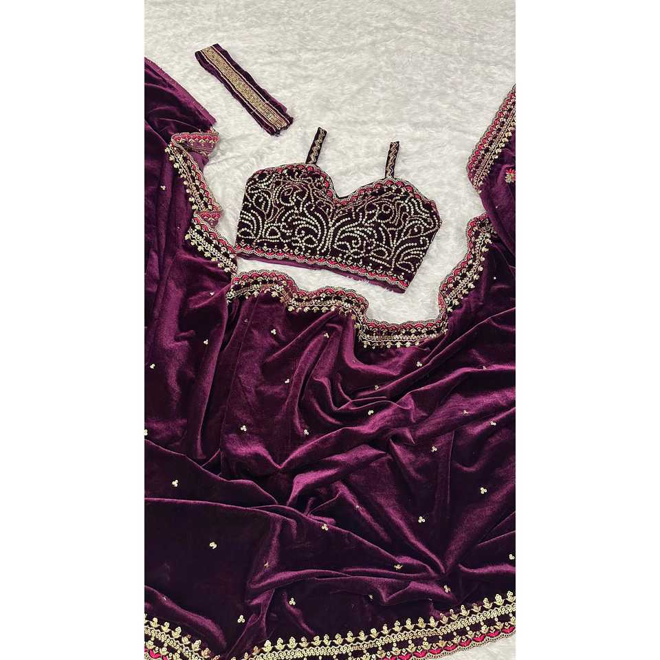 Beautiful Saree for Parties Featuring Sequence Dori & Thread Work for Indian & Pakistani Clothing
