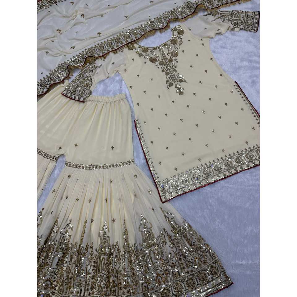 Beautiful Sharara & Dupatta Set with Embroidery & Sequins Work 2XL Size Top