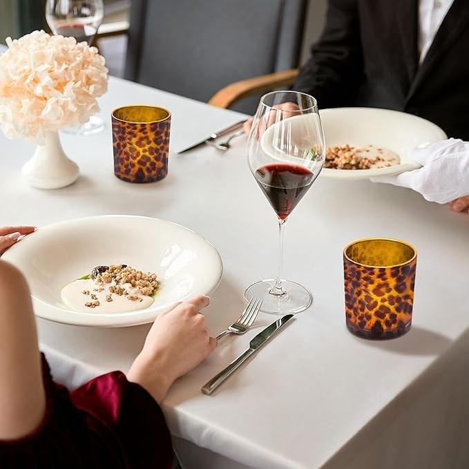 Beautiful Silk Leopard Printed Glass Votive Unique Glass Cheetah for Christmas Wedding Dinner Party Table Best Gifting Idea