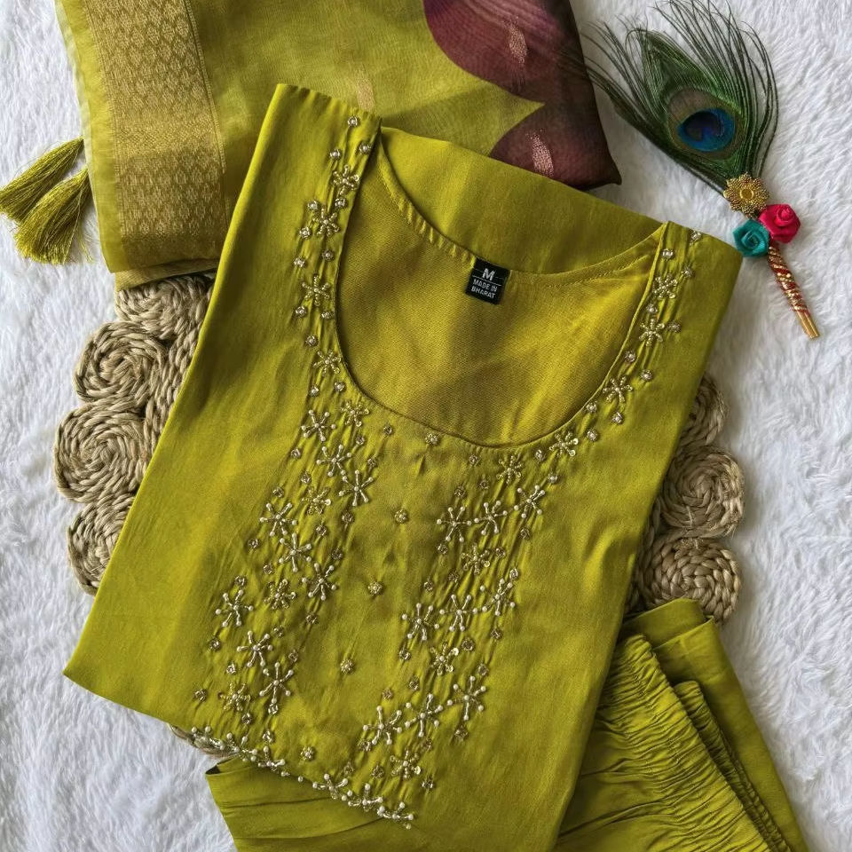 Beautiful Silk Salwar Suit with Handwork Fashion-Style Long Pakistani Salwar Kameez Dupatta Dress for Party Wedding Functions