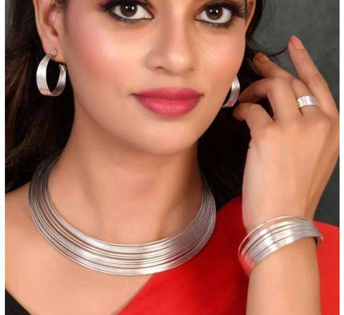 Beautiful Silver Plated Brass Hasli Set with Crown Pattern Necklace and Trendy Strand Chain Customized Design Gold Plated