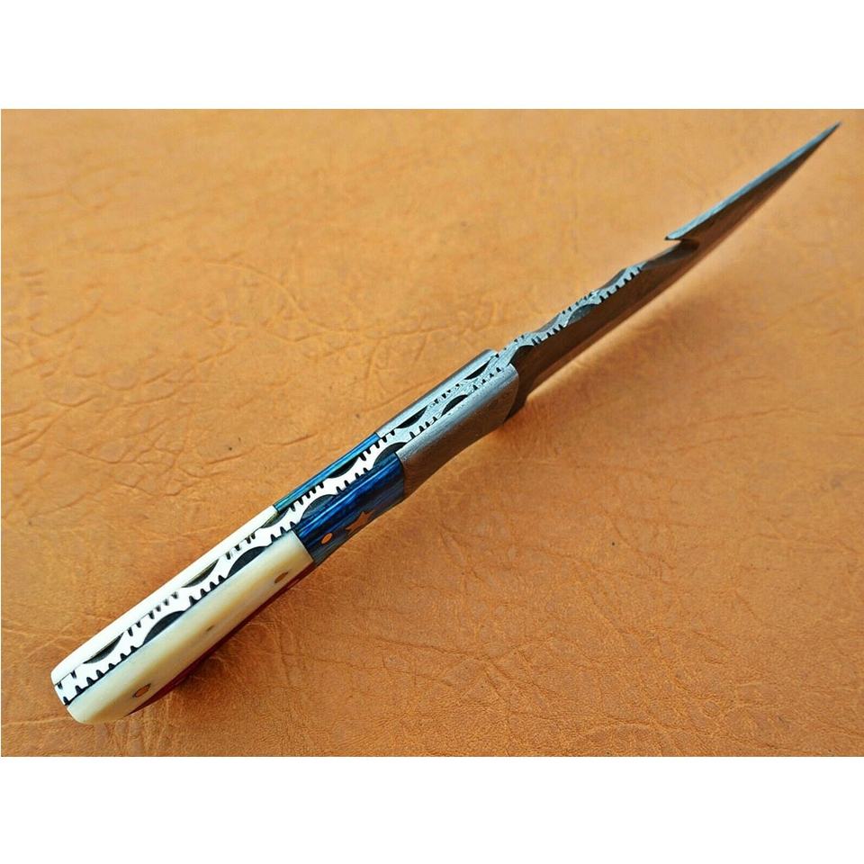 USA Flag Style Wood, Bone With Damascus Clip