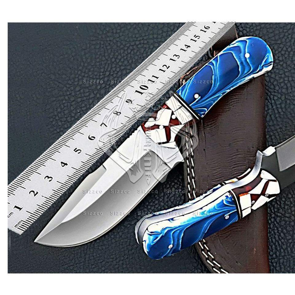 Sizzco Stainless Steel Fixed Blade Hunting Camping Knife Beautiful Multi-Color Corian Wood Handle Customizable OEM Gift for Him