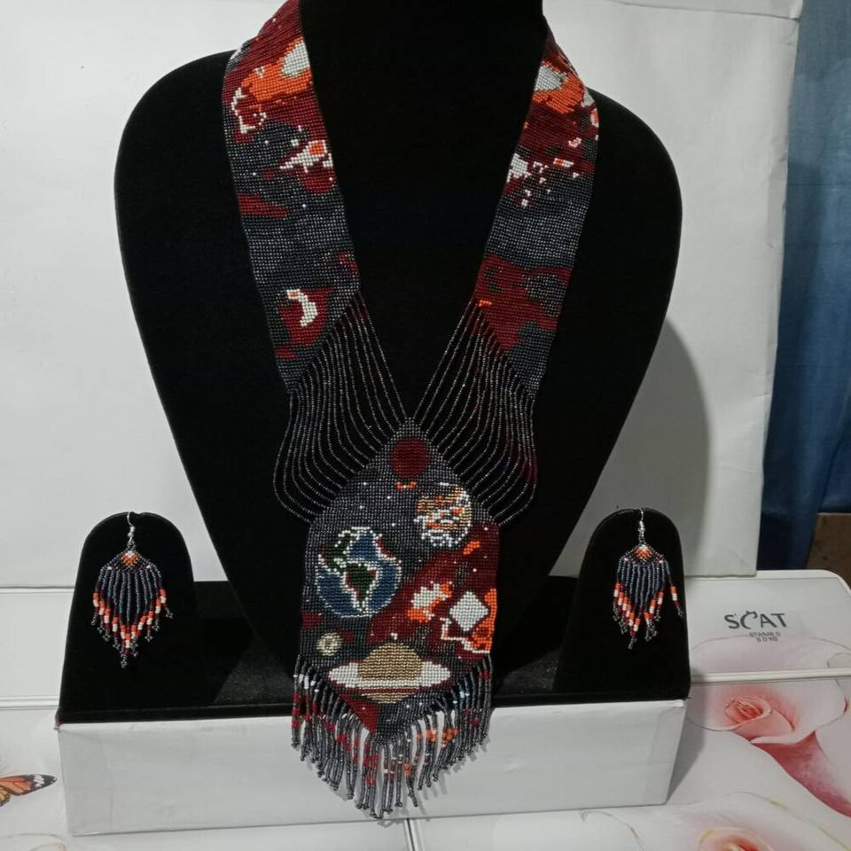 Beautiful Solar System Patterned Long Seeds Beaded Necklaces Handmade Necklaces for Women and Girls Wear in Wedding's