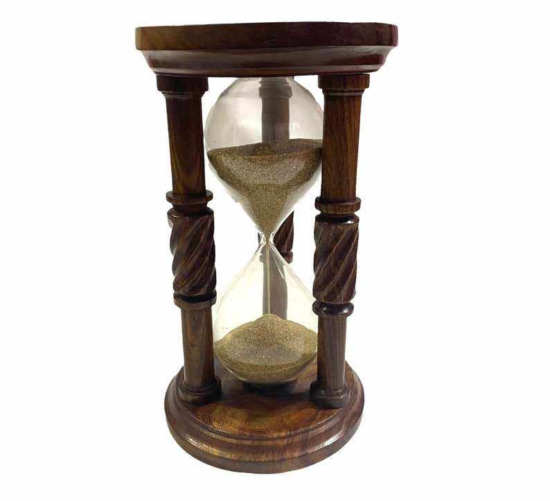 Beautiful Solid Brass Sand Timer Wooden Engraved Hourglass Engraved Hourglass for Home and Office and Decor