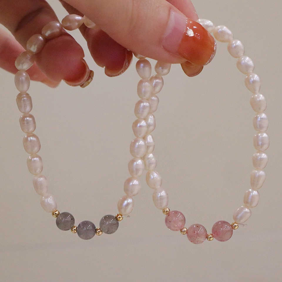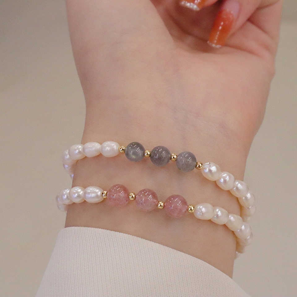 WENCHI Beautiful Strawberry Crystal Natural Freshwater Pearl Fashion Millet Bead 30g Bracelet Bangles