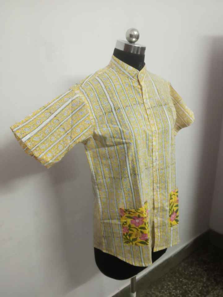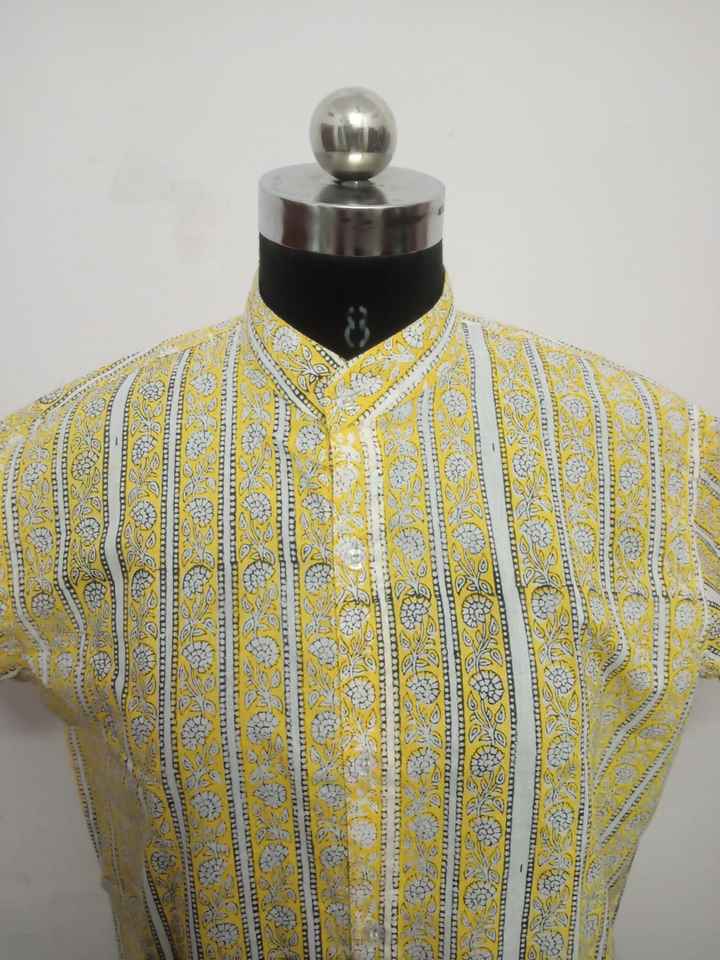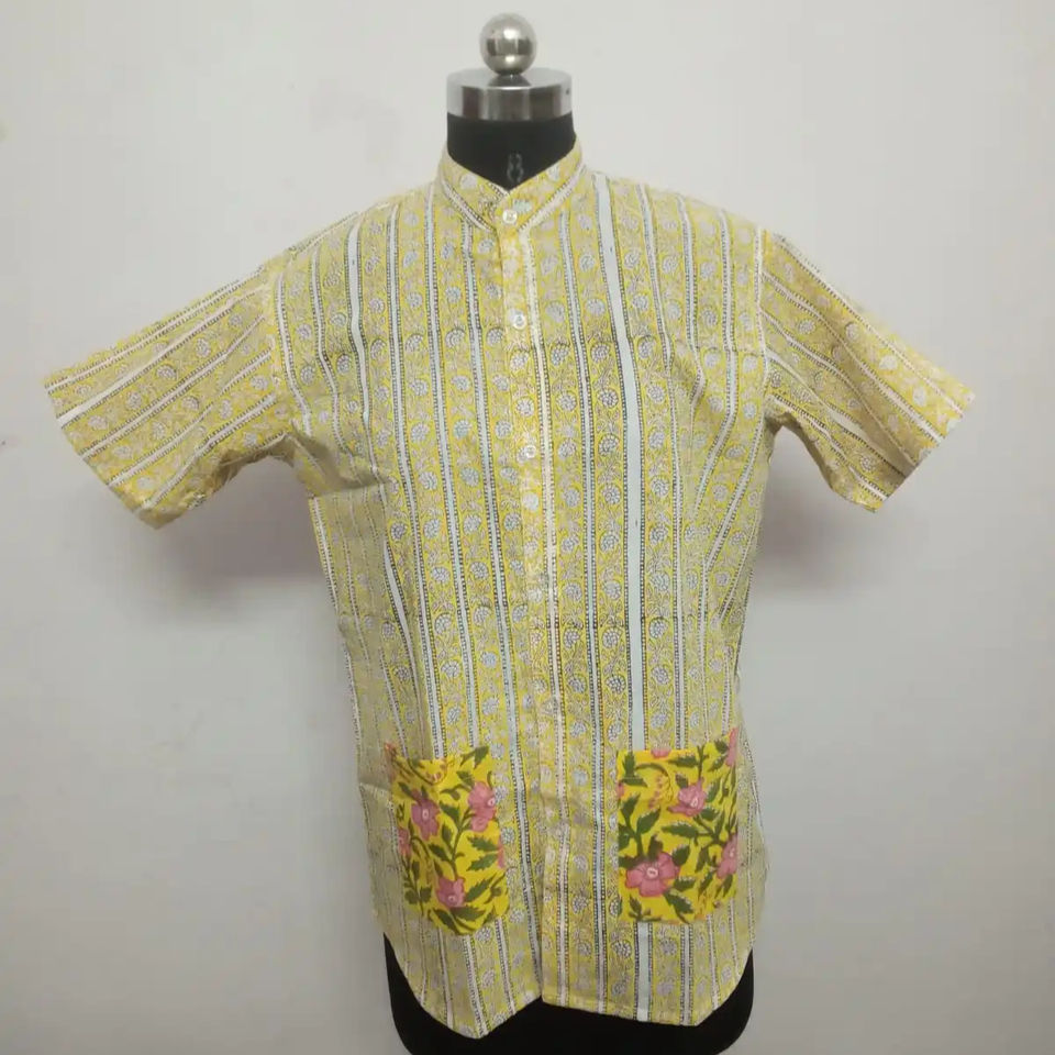 Beautiful Striped Pattern Hand Block Printed Cotton Shirt Pure Cotton Summer Wear with Short Sleeves for Parties