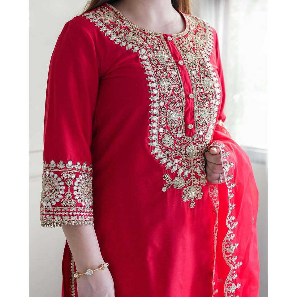 Beautiful Traditional Muslim Clothing & Accessories with Top-Bottom Dupatta and Embroidery Coding Dori-Sequence Work