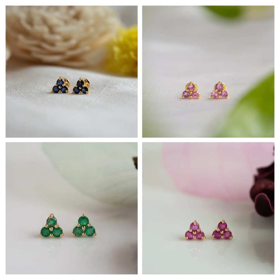 Beautiful Trio Triangle Cluster Stud Earrings Comes With Emerald-Ruby & Sapphire Gemstone in 925 Solid Sterling Silver Earrings