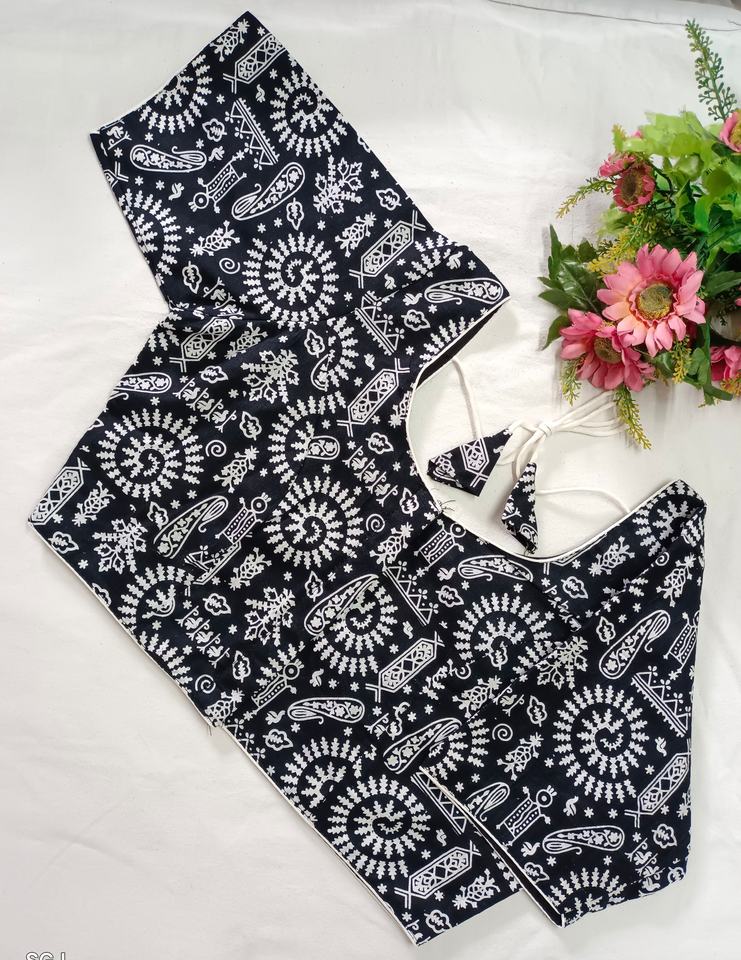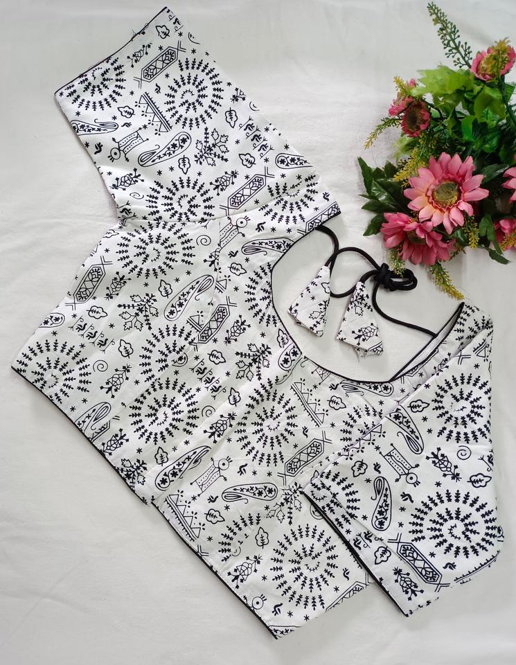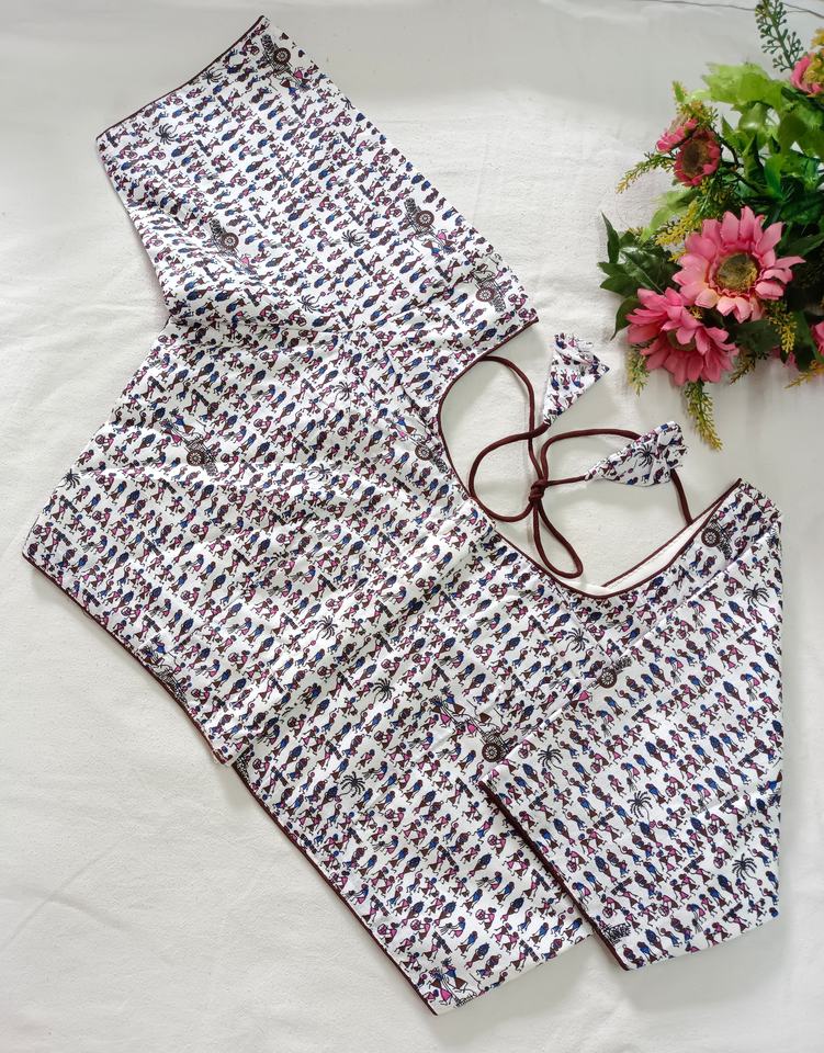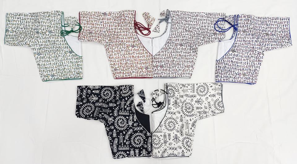 Beautiful V-Neck Formal Summer Blouse with Natural Dye Handblock Warli Print Embroidery Lining Modest Tops by Astar