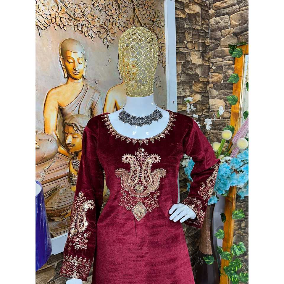 Beautiful Velvet Traditional Chinese Clothing-Party Wear Top Bottom Dupatta Ensemble