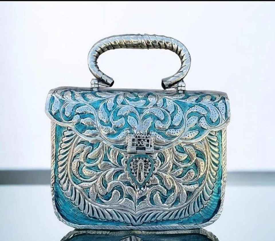 Metal Crafts Antique Craetion's Handmade Vintage Women's Brass Clutch Bag Beautiful Beaded Design with Custom Print